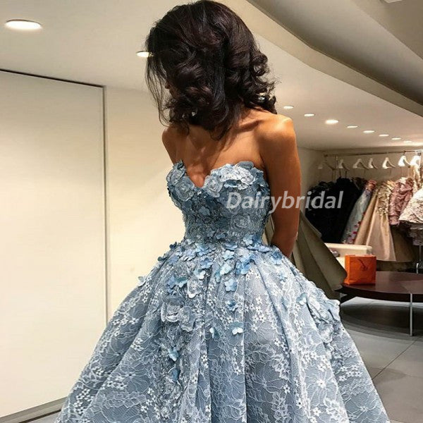 High-Low Applique Prom Dress, Sweet Heart Lace Prom Dress, D464