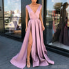 Sexy V-Neck A-Line Satin Slit Long Vintage Prom Dresses, FC1923