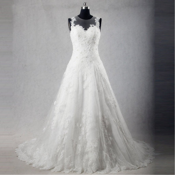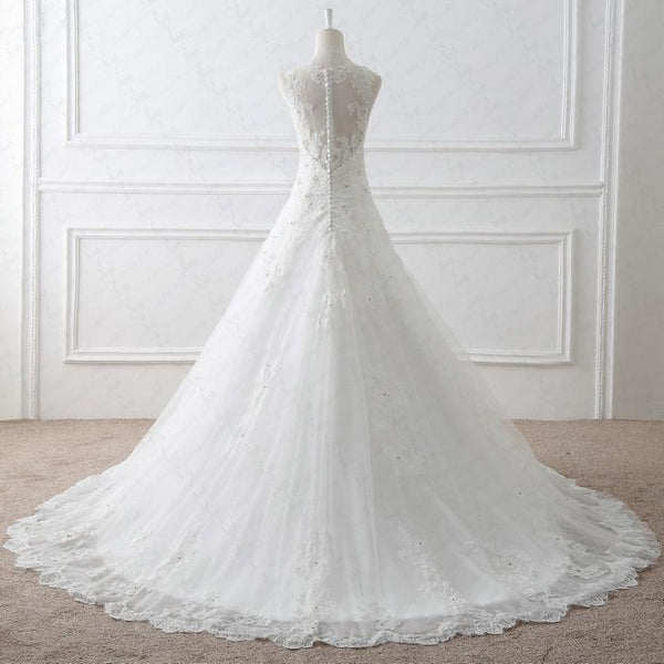 Long Wedding Dress, Off Shoulder Wedding Dress, Lace Bridal Dress, Applique Wedding Dress, Sleeveless Wedding Dress, Beading Wedding Dress, LB0327