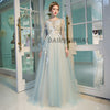 Tulle Prom Dresses, Long Sleeve Prom Dresses, Applique Party Prom Dresses, Open-Back Prom Dresses, DA954