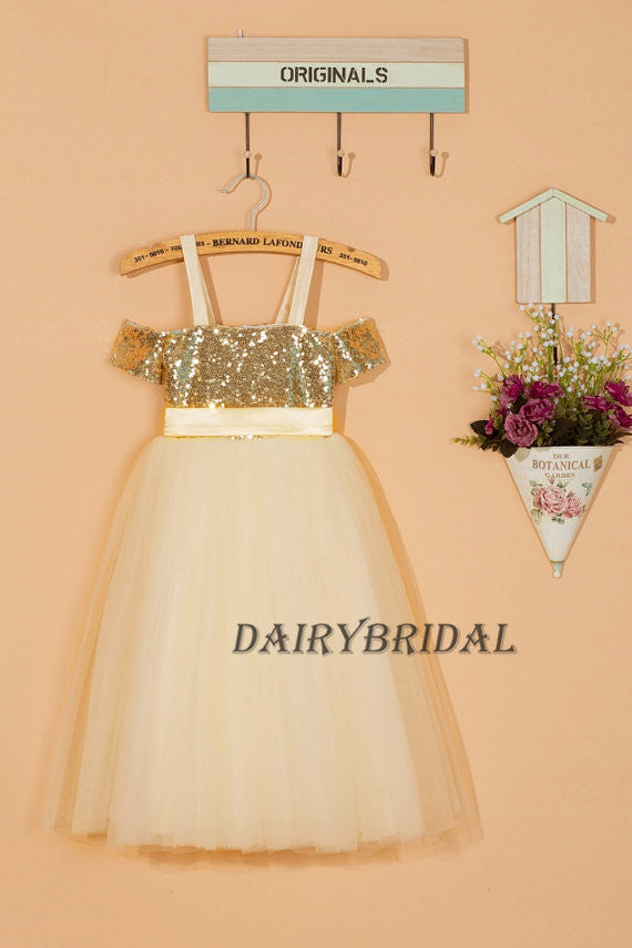 Two Straps Tulle Sequin Top Flower Girl Dresses, Lovely Little Girl Dresses, DA998