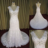 Elegant White Lace V Neck Beaded Inexpensive Long Wedding Bridal Dresses Gown, WG629