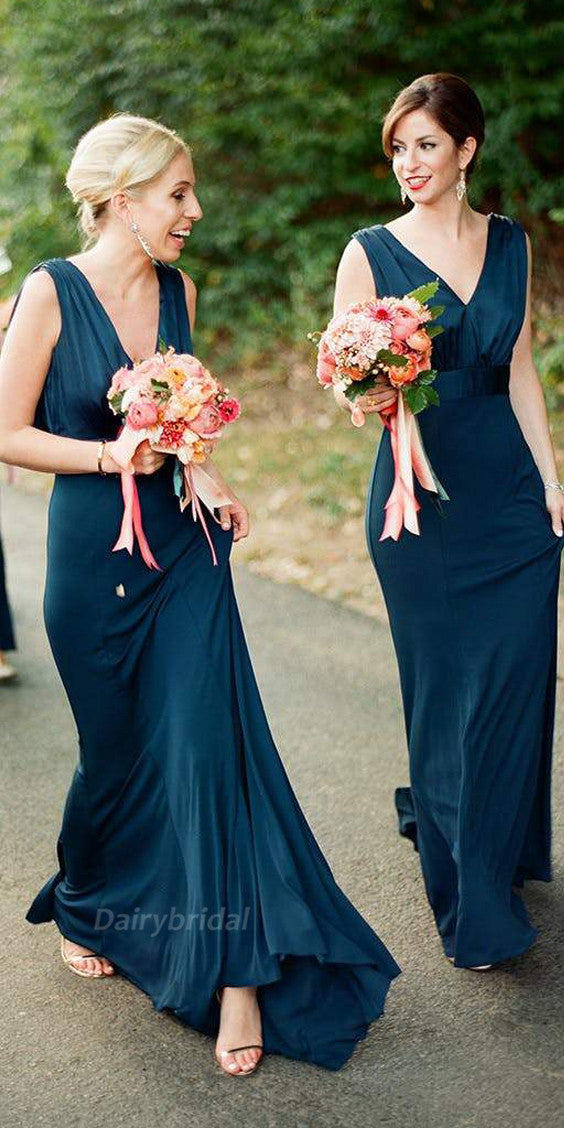 Sheath V-neck Sleeveless Floor-Length Backless Bridesmaid Dress, FC2052 Sheath V-neck Sleeveless Floor-Length Backless Bridesmaid Dress, FC2052