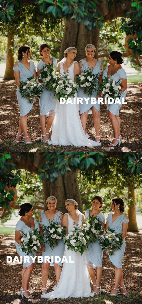 Short Jersey V-Back Knee-Length Cheap Sheath New Arrival Bridesmaid Dress, D1373