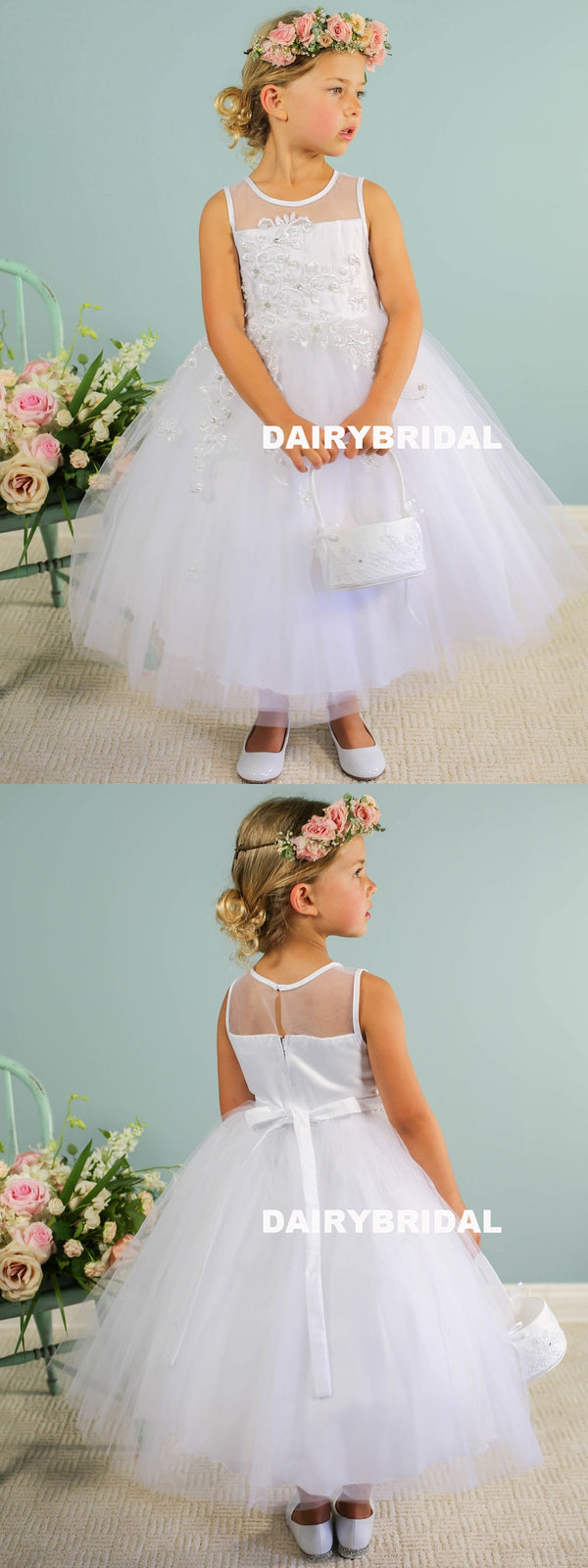 Cute Tulle A-Line Flower Girl Dresses, Applique Flower Lovely Little Girl Dresses, D1143