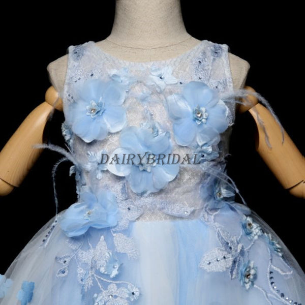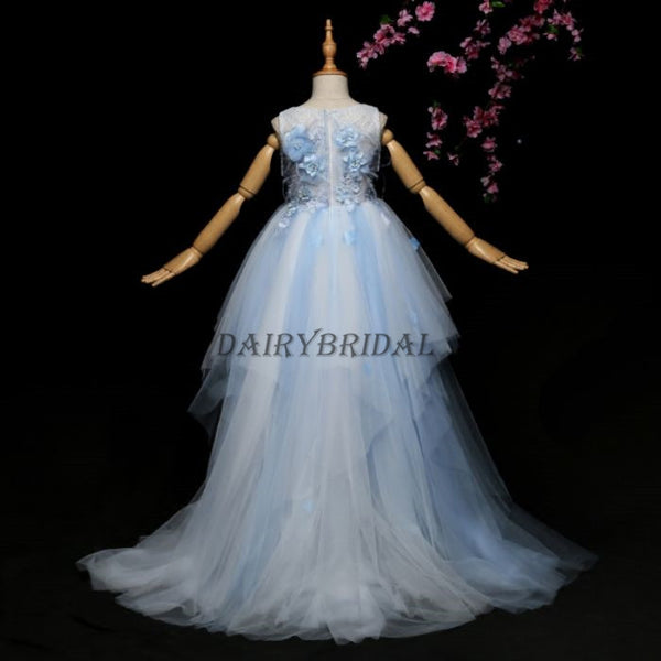 High-Low Sleeveless Applique Flower Girl Dresses, Lovely Little Girl Dresses, D10