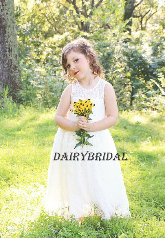 Lace Sleeveless Flower Girl Dresses with Bowknot, Lovely Little Girl Dresses, DA946