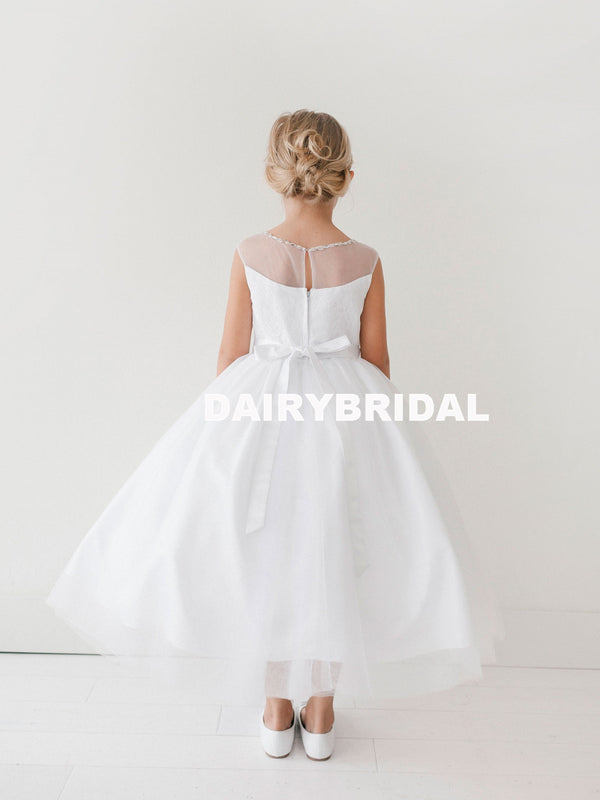 Lace Top Tulle Flower Girl Dresses, Popular Little Girl Dresses with Beaded Belt, D1147 Lace Top Tulle Flower Girl Dresses, Popular Little Girl Dresses with Beaded Belt, D1147