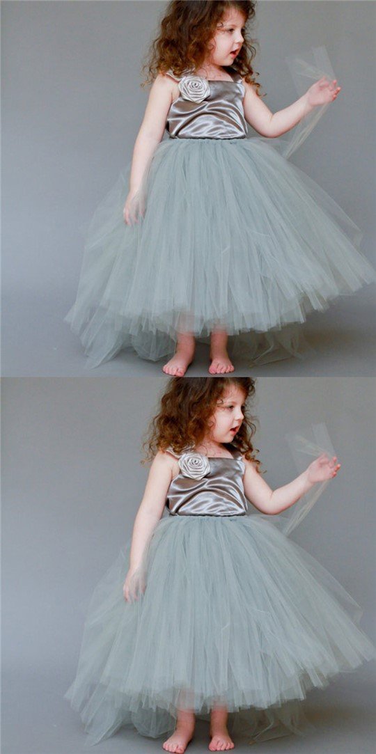 Satin Top Strap Tulle Flower Girl Dresses, Cute Little Girl Birthday Dresses, Free Custom Dresses, FG038