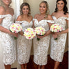 Off Shoulder Lace Tea-Length Bridesmaid Dress, Backless Mermaid Slit Bridesmaid Dress, D696