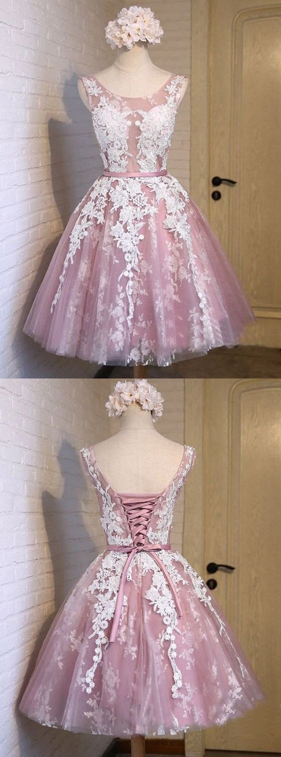 Popular Cute Sleeveless Knee-Length Lace Homecoming Dresses with White Appliques,220036 Popular Cute Sleeveless Knee-Length Lace Homecoming Dresses with White Appliques,220036