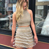 Tassel Two Pieces Homecoming Dress, Open-Back Unique Homecoming Dress, D1277